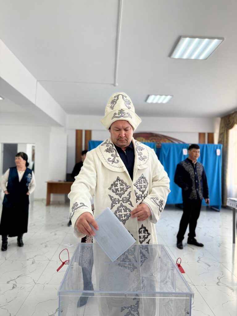 Тарихи кейіпкер дауыс беру рәсіміне қатысып, өз таңдауын жасады. Көрермендер мен учаскеге келген тұрғындар үшін бұл – ел тарихына құрмет көрсету мен азаматтық жауапкершілікті насихаттайтын ерекше сәт болды.